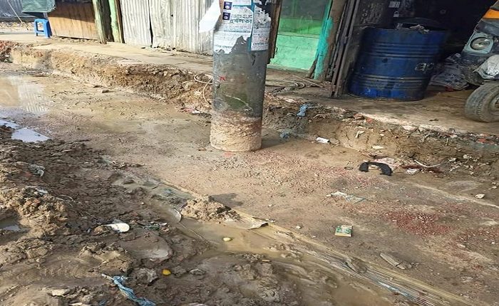 বান্দরবানের লামায় মাঝখানে বিদ্যুতের খুঁটি রেখেই সড়কের পাশে ড্রেন নির্মাণ