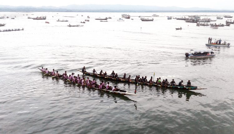 কাপ্তাই হ্রদে বিজয় উল্লাসে নৌকার মাঝিরা