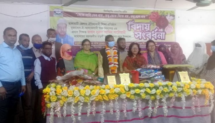 রাঙ্গামাটি জেলার ঐতিহ্যবাহী শিক্ষা প্রতিষ্ঠান মুজাদ্দেদ-ই আলফেসানী একাডেমী উচ্চ বিদ্যালয় এন্ড কলেজ এর প্রধান শিক্ষক নুরুল আমিন পাটোয়ারী কে বয়সজনিত চাকুরী হতে অবসরজনিত কারণে বিদায় সংবর্ধনা দেওয়া হয়েছে।