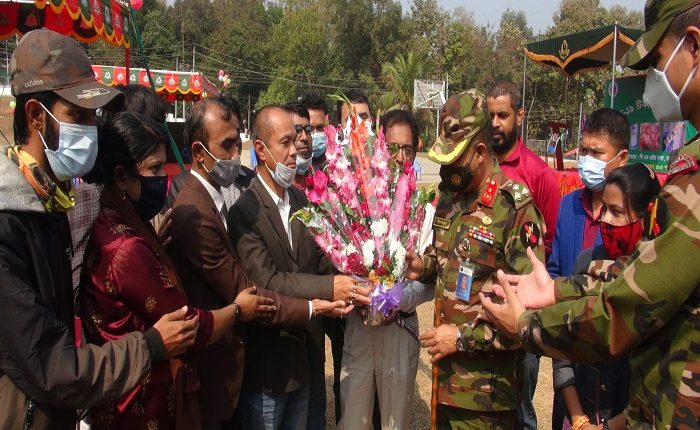 রাঙ্গামাটি সেনা রিজিয়ন কমান্ডার ব্রিগেডিয়ার জেনারেল ইফতেকুর রহমানের সাথে সৌজন্য স্বাক্ষাৎ করেছেন রাঙ্গামাটি প্রেসক্লাবের নেতৃবৃন্দ। রবিবার দুপুরে রাঙ্গামাটি সেনা রিজিয়ন মাঠে করোনা টিকা প্রদান অনুষ্ঠান শেষে রিজিয়ন কমান্ডারের সাথে এ স্বাক্ষাৎ করেন। এ সময় রাঙ্গামাটি প্রেসক্লাবের সভাপতি সুশীল প্রসাদ চাকমাসহ প্রেসক্লাবের নেতৃবৃন্দ রিজিয়ন কমান্ডারকে ফুলেল শুভেচ্ছা জানান।