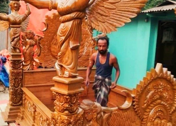 বলছিলাম খাগড়াছড়ি জেলার গুইমারা উপজেলাধীণ জালিয়পাড়া এলাকার কাঠ মিস্ত্রী কাঞ্চণ মিয়া ও মোঃ নুরুন্নবী’র কথা। বাসার মালিকের ডাক নাম ডা. নুরুন্নবী। পেশায় একজন ব্যবসায়ী। আর কাঠ মিস্ত্রী কাঞ্চণ মিয়া একই এলকার বাসিন্দা। দুজনে মিলে দীর্ঘ ৩ বছর ২ মাস কঠোর পরিশ্রমে বানিয়েছেন তাদের স্বপ্নের “পরী পালং খাট”। খাট তৈরির কাজ শেষ করে বাইরে বের করলেই সেটি স্থানীয়দের নজড় কাড়ে। যার ফলে সামাজিক যোগাযোগ মাধ্যমসহ লোক মুখে এর কারুকার্য্যের কথা ছড়িয়ে পড়ে। বর্তমানে দেশের বিভিন্ন স্থানের লোকজন এটি দেখতে ভির জামাচ্ছেন তার বাড়িতে।