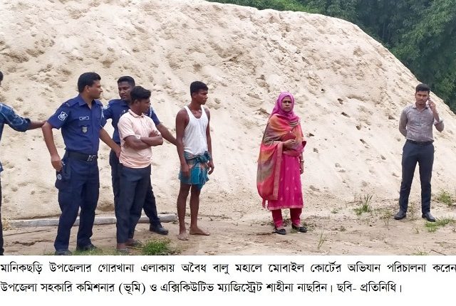 মানিকছড়িতে অবৈধভাবে বালু উত্তোলনের দায়ে অর্থদন্ড