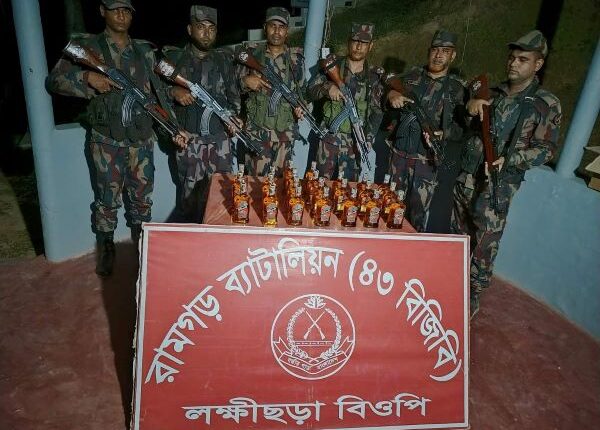 খাগড়াছড়ির রামগড় ৪৩ বিজিবির অভিযানে ভারতীয় মদ জব্দ