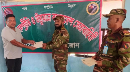 দূর্গাপূজা উপলক্ষে লংগদুতে সেনাবাহিনীর আর্থিক সহায়তা