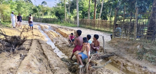 বান্দরবানের নাইক্ষ্যংছড়ি উপজেলার বাইশারী ইউনিয়নের তিতারপাড়া থেকে ইলিয়াসের দোকান পর্যন্ত সড়কটির বেহালদশায় এলাকাবাসীর জন্য চরম দুর্ভোগের কারণ হয়ে দাঁড়িয়েছে। বর্ষায় রাস্তাজুড়ে জমে থাকা পানি ও গভীর গর্ত তৈরি হওয়ায় এখন গাড়ি চলাচল পুরোপুরি বন্ধ, এমনকি পথচারীরাও নিরাপদে হাঁটাচলা করতে পারছেন না।