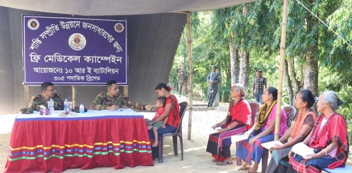 কাপ্তাই ১০আরই ব্যাটালিয়ন কর্তৃক অসহায় দুস্থদের ফ্রি চিকিৎসা সহ ঔষধ বিতরণ