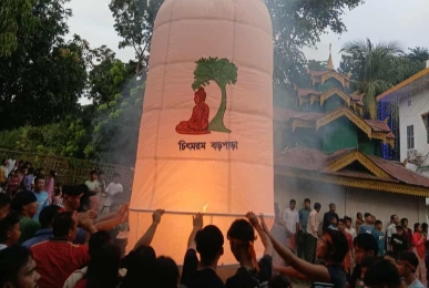 কাপ্তাইয়ে প্রবারণা পূর্ণিমা পালন আকাশে উড়লো বর্ণিল ফানুস