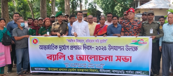 “সমন্বিত উদ্যোগে, প্রতিরোধ করি দুর্যোগ” প্রতিপাদ্য ধারণ করে খাগড়াছড়ি দীঘিনালা উপজেলায় আন্তর্জাতিক দুর্যোগ প্রশমন দিবস-২০২৫ পালন করা হয়েছে। সোমবার (১৩অক্টোবর) সকাল ১১টায় উপজেলা প্রশাসন (দুর্যোগ ব্যবস্থাপনা বিভাগ), আয়োজনে আন্তর্জাতিক দুর্যোগ প্রশমন দিবস উদযাপন উপলক্ষে আলোচনাসভা অনুস্ঠিত হয়।