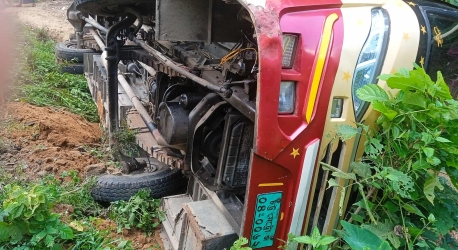 বাঙ্গালহালিয়া-চন্দ্রঘোনা সড়কে নিয়ন্ত্রণ হারিয়ে বাস খাদে, আহত ১