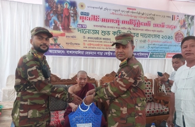 এ সময় কাপ্তাই জোনের পক্ষ থেকে মেজর মোঃ তানভীর হাসান সিফাত, ক্যাম্প কমান্ডার বাঙ্গলহালিয়া আর্মি ক্যাম্প অনুষ্ঠানস্থল পরিদর্শন করেন এবং আয়োজক কমিটি ও স্থানীয় ধর্মপ্রাণ জনগণের সাথে সৌজন্য সাক্ষাৎ করেন। ৬৩তম দানোত্তম শুভ কঠিন চীবর দানোৎসব-২০২৫ শান্তিপূর্ণ, সুশৃঙ্খল ও ধর্মীয় ভাবগাম্ভীর্যের মধ্য দিয়ে সফলভাবে সম্পন্ন হয়।