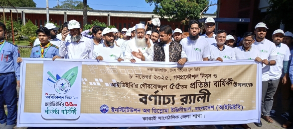 রাঙ্গামাটি কাপ্তাইয়ে গণপ্রকৌশল দিবস ও আইডিইবি’র ৫৫তম প্রতিষ্ঠা বার্ষিকী উদযাপন করা হয়েছে। বৃহস্পতিবার (১৩নভেম্বর) সকাল ১১টায় বাংলাদেশ সুইডেন পলিটেকনিক ইনস্টিটিউট এ আইডিইবি’র সাংগঠনিক জেলা কাপ্তাইয়ের আয়োজনে বর্ণাঢ্য র্যালী ও আলোচনা সভা অনুষ্ঠিত হয়।
