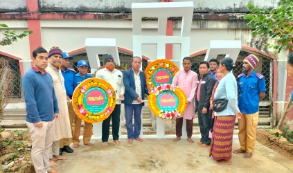 বান্দরবানের থানচিতে শহীদ মিনারে জুতা পায়ে গ্রাম পুলিশ