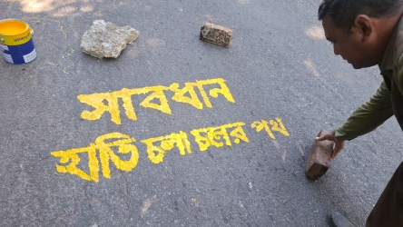 হাতি ও মানুষের নিরাপত্তায় বন বিভাগের সতর্কতামূলক সড়ক নির্দেশনা চিহ্ন