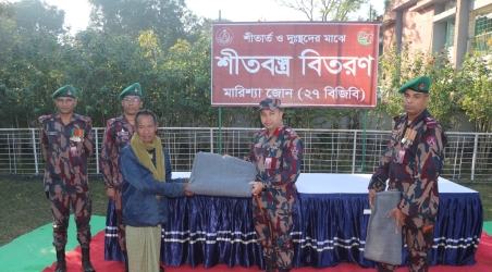 বাঘাইছড়িতে দুঃস্থ ও অসহায়দের মাঝে কম্বল বিতরণ করল ২৭ বিজিবি