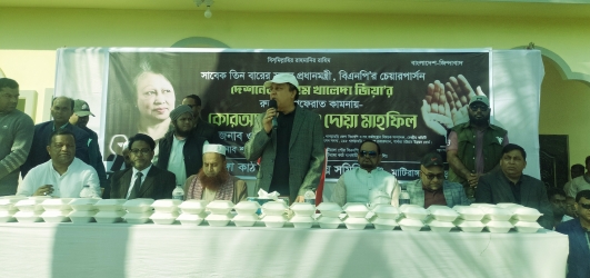 পরে প্রধান অতিথি সহ আগত সকল অতিথি এবং নেতৃবৃন্দ সাবেক প্রধানমন্ত্রী বেগম খালেদা জিয়ার রুহের মাগফিরাত কামনা ও দোয়া মাহফিলে যোগ দেন।