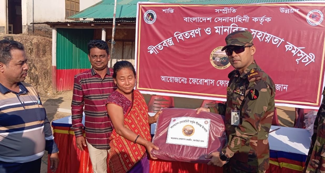 বাঘাইহাট জোন এর উপস্থিতিতে,সাজেক অদিতি পাবলিক স্কুল মাঠে, ৬নং আদর্শ পাড়া, কিয়াংঘাট, সেগুন বাগান, আনসার টিলা ও পার্শ্ববর্তী এলাকার দুই শতাধিক স্থানীয় পাহাড়ি ও বাঙ্গালি জনসাধারণের মাঝে শীতবস্ত্র বিতরণ করেছে সেনাবাহিনীর বাঘাইহাট জোন।