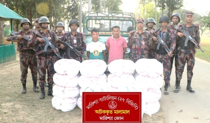 বিজিবি সুত্র জানায়, গোয়েন্দা তথ্যের ভিত্তিতে মারিশ্যা জোন (২৭ বিজিবি) এর জোন কমান্ডারের নির্দেশক্রমে সহকারী পরিচালক মোহাম্মদ হাফিজুর রহমান, বিজিবিএমএস-এর নেতৃত্বে একটি টহল দল বিকাল আনুমানিক ২টা ৫০ মিনিটে অভিযান পরিচালনা করে। মারিশ্যা জোনের দায়িত্বপূর্ণ কচুছড়িমাঝিপাড়া সীমান্ত সড়কের ১৬ কিলো নামক স্থানে, সীমান্ত থেকে প্রায় ৩ কিলোমিটার বাংলাদেশের অভ্যন্তরে অভিযানটি পরিচালিত হয়। এ সময় বাংলাদেশ থেকে অবৈধভাবে ভারতে পাচারের সময় ১৮ বস্তা বাংলাদেশি রসুন, একটি চাঁদের গাড়ি এবং দুইজন পাচারকারীকে আটক করা হয়।