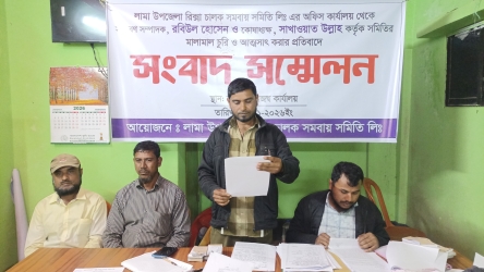 লামা উপজেলা রিক্সা চালক সমবায় সমিতির অফিস কার্যালয় থেকে সাধারণ সম্পাদক রবিউল হোসেন ও কোষাধ্যক্ষ সাখাওয়াত উল্লাহ কর্তৃক সমিতির মালামাল চুরি ও আত্মসাৎ করার প্রতিবাদে সংবাদ সম্মেলন করেছে সংগঠনের নেতৃবৃন্দ। শনিবার (৩১ জানুয়ারি ২০২৬ইং) বিকেল ৫টায় সমিতির কার্যালয়ে অনুষ্ঠিত হয়।