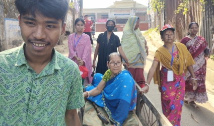 দেখা গেল, সাধারণ কাঠের ভেন গাড়ি, যে গাড়িতে সাধারণত পণ্য আনা-নেওয়া করা হয়। সেই গাড়িটিই হয়ে উঠল ভোট দেওয়ার জরুরী বাহন। রাঙ্গামাটি শহরের গর্জনতলী এলাকার বাসিন্দা লক্ষ্মী রাণী ত্রিপুরা। তিনি প্রমান করলেন একটি ভোট কেবল একটি চিহ্ন নয়, বরং দেশের প্রতি স্বাধীনতার প্রতি অদম্য ভালোবাসার এক অনন্য স্বাক্ষর।