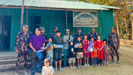 রাঙ্গামাটি বাঘাইছড়িতে মারিশ্যা জোন (২৭ বিজিবি) এর পক্ষ থেকে মারিশ্যা জোনের দায়িত্বপূর্ণ এলাকার বিওপি/ক্যাম্প/টিওবি এর দায়িত্বপূর্ণ ৮টি স্কুলের ছাত্র-ছাত্রীদের মাঝে শিক্ষা সহায়ক ও খেলাধুলা সামগ্রী বিতরণ করা হয়েছে।