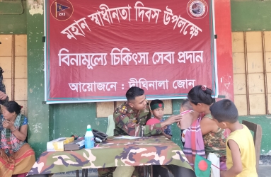 মহান স্বাধীনতা দিবস উপলক্ষে দীঘিনালায় সেনাবাহিনীর চিকিৎসা সেবা