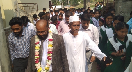 বৃহস্পতিবার (২ এপ্রিল) সকালে প্রধান শিক্ষকের অবসরজনিত বিদায় উপলক্ষে আয়োজিত সংবর্ধনা অনুষ্ঠানে সংবর্ধিত অতিথি হিসেবে উপস্থিত ছিলেন, প্রতিষ্ঠাতা প্রধান শিক্ষক মোঃ মেহেবুল কালাম আজাদ। একই সাথে আসন্ন এসএসসি পরীক্ষার্থীদের বিদায় ও নবাগত শিক্ষার্থীদের ফুল দিয়ে বরণ করে নেয়া হয় প্রতিষ্ঠাতা প্রধান শিক্ষকেরই উপস্থিতিতেই।