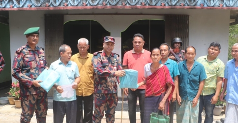 বাঘাইছড়িতে মারিশ্যা জোন-২৭ বিজিবি’র পক্ষ থেকে বিঝু’র উপহার সামগ্রী বিতরণ