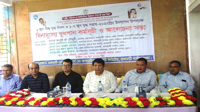 রাঙ্গামাটিতে বিশ্ব দুগ্ধ দিবস ও দুগ্ধ সপ্তাহ পালিত হয়েছে। সোমবার (৬ জুন) সকালে জেলা সমাজসেবা আওতাধীন রাঙ্গামাটি শিশু পরিবার সভাকক্ষে ”পুষ্টি, পরিবেশ ও অর্থনৈতিক উন্নয়নে টেকসই দুগ্ধ শিল্প” এই প্রতিপাদ্যকে সামনে রেখে রাঙ্গামাটি ডেইরী ফারমার্স কো-অপারেটিভ সোসাইটি লিমিটেড এর আয়োজনে ১-৭ জুন ২০২২ ইং বিনামূল্যে দুগ্ধপান কর্মসূচি ও আলোচনাসভা অনুষ্ঠিত হয়।