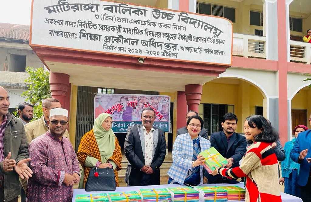 এর পর পর মাটিরাঙ্গা পৌর সদরে অবস্থিত সকল শিক্ষা প্রতিষ্ঠানে গিয়ে বই বিতরণ উৎসব করেন তিনি। এসময়, মাটিরাঙ্গা উপজেলা প্রাথমিক শিক্ষা অফিসার মোঃ আশরাফুল আলম সিরাজি, উপজেলা মাধ্যমিক একাডেমিক শিক্ষা কর্মকর্তা শরিফুল ইসলাম, উপজেলা রিসোর্স ইনস্ট্রাক্টর মোঃ আসগর হোসেন,মাটিরাঙ্গা বনশ্রী বিদ্যানিকেতন এর ভারপ্রাপ্ত প্রধান শিক্ষক আবু বকর ছিদ্দিক ও শিক্ষার্থরী অভিভাবকগণ উপস্থিত ছিলেন। শিক্ষার্থীরা নতুন বই পেয়ে আনন্দ উল্ল্যাসে মেতে উঠে।