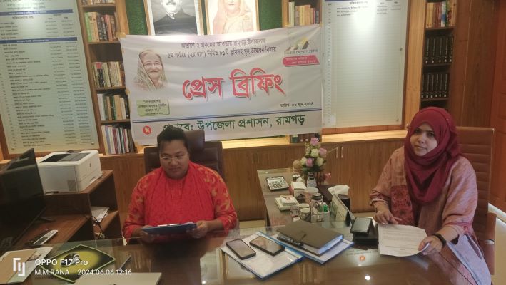 আশ্রয়ণ-২ প্রকল্পের আওতায় সারাদেশে ৫ম পর্যায়ে নির্মিত গৃহ সমূহের হস্তান্তর কার্যক্রম উদ্বোধন উপলক্ষ্যে খাগড়াছড়ির রামগড়ে উপজেলা প্রশাসনের প্রেস ব্রিফিং অনুষ্ঠিত হয়েছে। বৃহস্প্রতিবার (০৬ জুন) দুপুরে উপজেলা নির্বাহী অফিসার মমতা আফরিন এ প্রেস ব্রিফিং করেন।