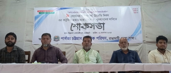 রাঙ্গামাটি জেলার লংগদু উপজেলায় ৩৫ কাঠুরিয়া হত্যা সহ পাহাড়ের সকল গণহত্যার বিচার ও ক্ষতিগ্রস্তদের পূর্ণবাসনের দাবি জানিয়ে শোক সভা করেছে পার্বত্য চট্টগ্রাম নাগরিক পরিষদ।