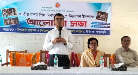 আলোচনা সভায় প্রধান অতিথি নির্বাহী অফিসার মুহাম্মদ ইনামুল হাছান বলেন, কন্যা হলো পিতার প্রিয় সন্তান, কন্যার প্রতি পিতার সবচেয়ে বেশি ভালোবাসা থাকে। বিশে^ যা কিছু আছে তা অর্ধেক করেছে নর আর অধেক নারী। পৃথিবীকে সাজিয়েছে নারীরা। নারী প্রথমে একজনের কন্যা, বোন, স্ত্রী ও মা যার মর্যাদা অনেক বড়। কন্যা শিশুকে পরিবারে অবহেলা করা যাবে না, ছেলে শিশুর মত সমান অধিকার দিতে হবে। বাল্য বিবাহ দেয়া যাবে না। শিক্ষা অর্জন করে কন্যা শিশুরা দেশের উন্নয়নে অবদান রাখতে পারে। বাল্য বিবাহ দেয়া মানে একজন কন্যা শিশুকে নিরবে গলা চিপে হত্যা করা। তাই আসুন আমরা কন্যাশিশুর প্রাপ্য অধিকার নিশ্চিত করি।