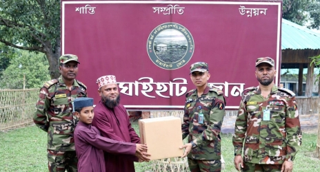 বাঘাইছড়ির বাঘাইহাটস্থ এতিমখানায় সেনাবাহিনীর খাদ্যদ্রব্য বিতরণ