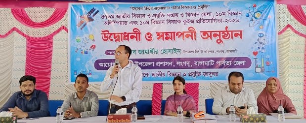 “উদ্ভাবন নির্ভর বাংলাদেশ গঠনে বিজ্ঞান ও প্রযুক্তি” এই প্রতিপাদ্যেকে সামনে রেখে লংগদুতে ৪৭তম জাতীয় বিজ্ঞান ও প্রযুক্তি সপ্তাহ ও বিজ্ঞান মেলা, ১০ম বিজ্ঞান অলিম্পিয়াড এবং ১০ম বিজ্ঞান বিষায়ক কুইজ প্রতিযোগীতা- ২০২৬ এর উদ্বোধনী ও সমাপনী অনুষ্ঠিত হয়েছে।