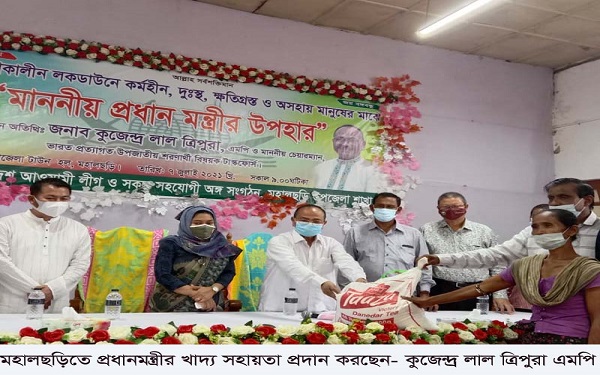 বুধবার (৭ জুলাই) সকালে মহালছড়ি টাউন হলে এ খাদ্য সহায়তা প্রদান করা হয়। এ সময় প্রধান অতিথি হিসেবে উপস্থিত ছিলেন, ভারত প্রত্যাগত শরনার্থী বিষয়ক টাস্ক ফোর্স চেয়ারম্যান কুজেন্দ্র লাল ত্রিপুরা এমপি। বিশেষ অতিথি হিসেবে উপস্থিত ছিলেন, খাগড়াছড়ি পার্বত্য জেলা পরিষদ চেয়ারম্যান মংসুইপ্রু চৌধুরী অপু, খাগড়াছড়ি পৌর মেয়র নির্মলেন্দু চৌধুরী, খাগড়াছড়ি জেলা আওয়ামীলীগ এর সহ সভাপতি কল্যাণমিত্র বড়ূয়া, জেলা পরিষদ সদস্য জুয়েল ত্রিপুরা, সদস্য মংক্যচিং চৌধুরী, সদস্য এড.আশুতোষ চাকমা, সদস্য খোকনেশ্বর ত্রিপুরা, মহালছড়ি উপজেলা নির্বাহী কর্মকর্তা জোবাইদা আক্তার, মহালছড়ি উপজেলা আওয়ামীলীগ এর সভাপতি রতন কুমার শীল, সাধারণ সম্পাদক জসিম উদ্দিনসহ স্থানীয় আওয়ামীলীগ ও সহযোগী সংগঠনের নেতৃবৃন্দ উপস্থিত ছিলেন।
