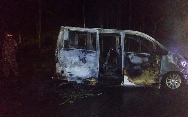 লামায় আগুন লেগে নোহা গাড়ি পুড়ে ছাই, আহত ২